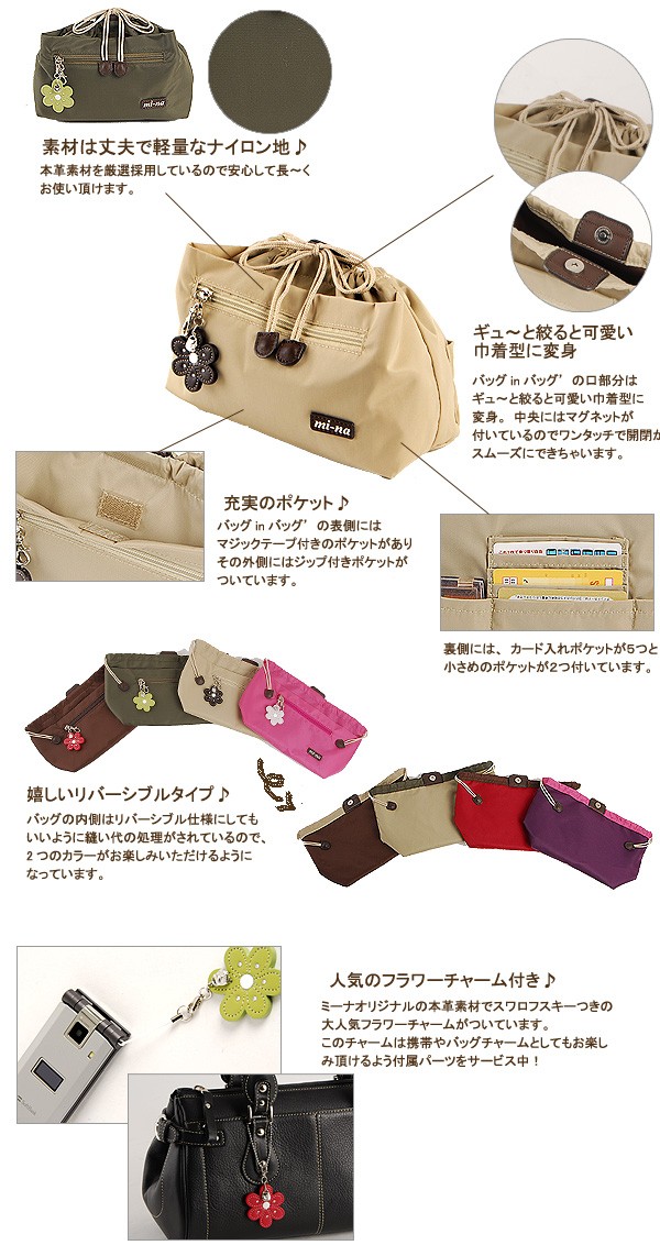 ちょっと対象年齢お高めなお店みたいだったけど、送料対策もあってチャーム付きバッグinバッグも同梱で注文しました。何気に使いやすそう。