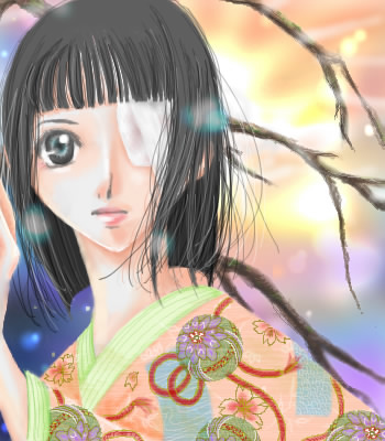 某所メイン板で仮保存中の大きめサイズ絵、着物の柄で行き詰ってたのでここしばらく同じところのオリジナル板で練習してました。